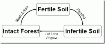 It turns out that the soil only lasted a few years before the crops began to fail. So what do they do? They move to another part of the Rain Forest and burn it down, then they use the soil for a few years until it no longer can support them.