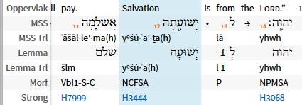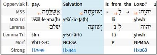 The Hebrew word for salvation is Y’shua. Here is a clipping from the NASB Interlinear text: